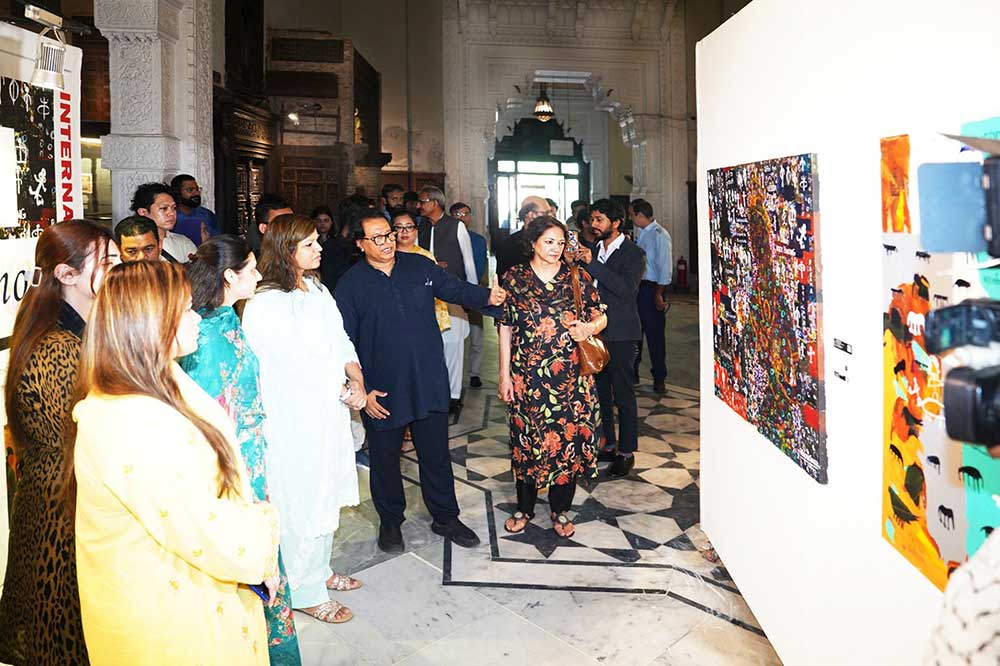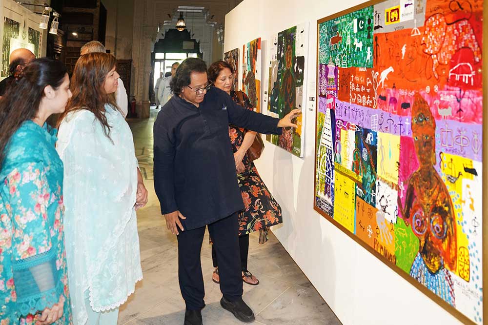 The tour began with the exhibition Veils of Memory at the Lahore Museum, inaugurated by Director Nabila Irfan. Saheed presented paintings inspired by Sri Lankan cave and rock art, juxtaposed with the Sigiriya Frescoes, paying homage to ancient traditions and universal themes of human experience. The museum acquired one of his paintings for its permanent collection, a testament to Saheed’s impact on Pakistan’s art landscape and a meaningful step in cross-cultural exchange between the two countries.