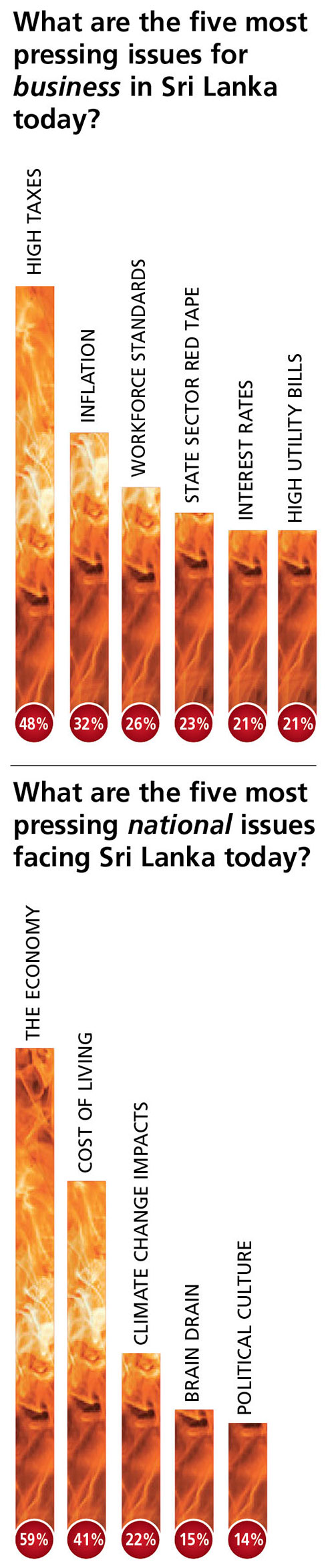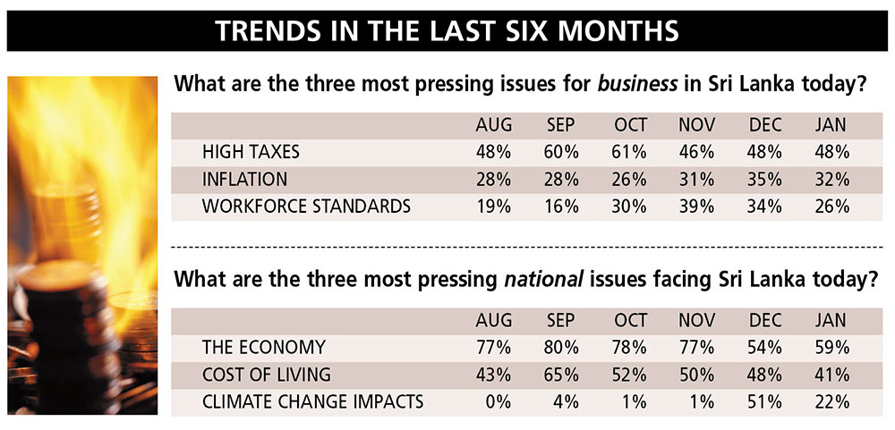 According to the exclusive poll conducted in the first week of January, interest rates and high utility bills rank jointly in fourth place with both issues cited by 21 percent of the sample population.
