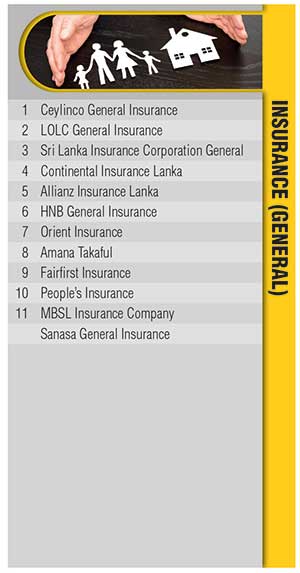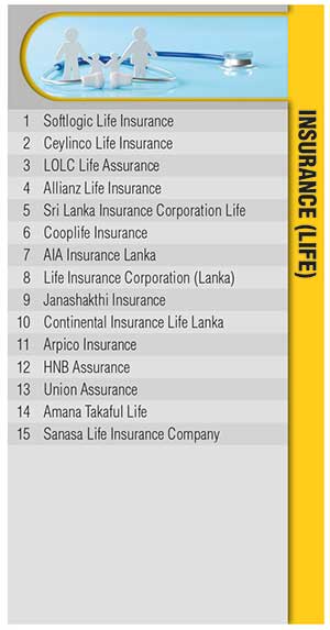 And Softlogic Life Insurance secures the top position in the life insurance category while Ceylinco General Insurance remains the favoured option for general insurance.