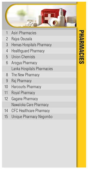 In a recently introduced category, Asiri Pharmacies secures the highest ranking among pharmacies with Rajya Osusala, Hemas Hospitals Pharmacy, Healthguard Pharmacy and Union Chemists trailing closely.
