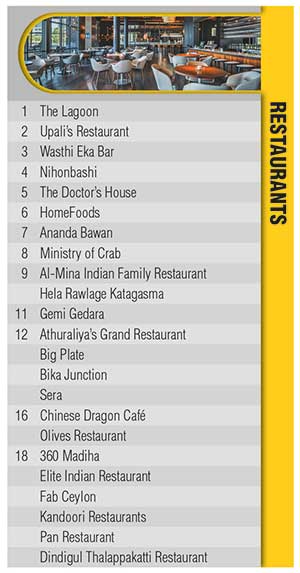 According to survey respondents, The Lagoon and Upali’s Restaurant are the top two restaurants for the year.
