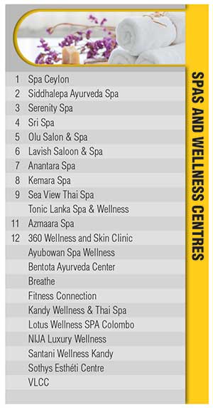 Among spas and wellness centres in Sri Lanka, Spa Ceylon and Siddhalepa Ayurveda Spa continue to lead for service excellence, holding their positions from the previous year, while Serenity Spa claims the third spot.