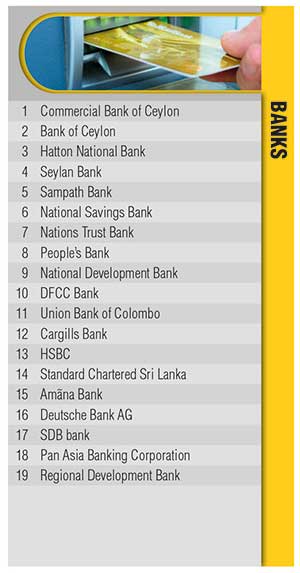 Commercial Bank of Ceylon maintains its No. 1 position in the banking sector, followed by Bank of Ceylon in second place and Hatton National Bank (HNB) in third.