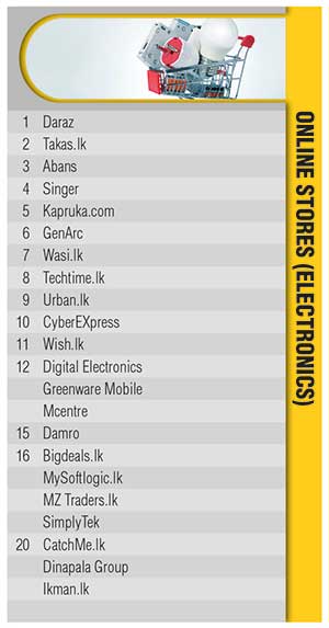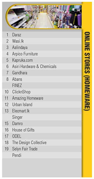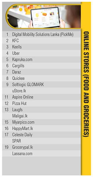 In the online categories, Daraz remains at the forefront for electronics and homeware while Fashion Bug retains its pole position in clothing. Meanwhile, Digital Mobility Solutions Lanka (PickMe) claims the prime spot in the online food and grocery category.
