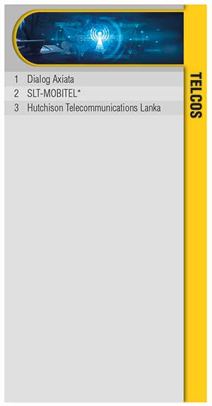 The three leading service oriented telcos this year are Dialog Axiata, SLT-MOBITEL and Hutchison Telecommunications Lanka.