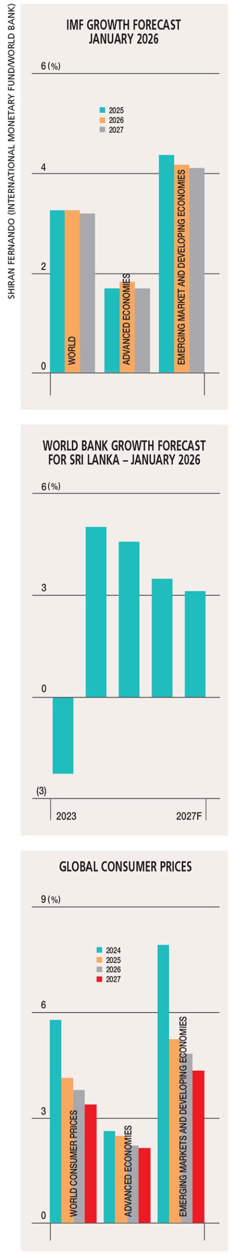 SRI LANKA GROWTH For Sri Lanka, the outlook is more sobering. The World Bank estimates GDP growth at 4.6 percent in 2025 but projects a slowdown to 3.5 percent this year and 3.1 percent in 2027.