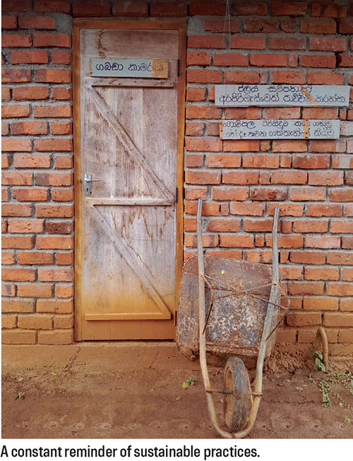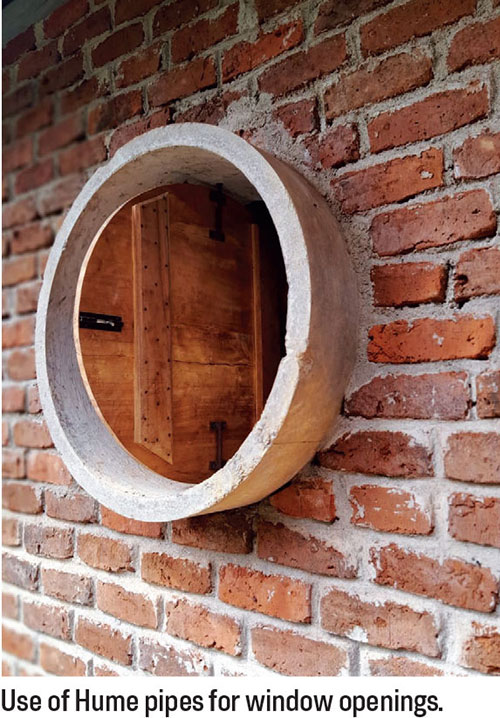 Learning from this, the little clan proceeded to build their own rustic accommodation, economically using scrap material and resources found within the land: big bricks and timber, innovatively used Hume pipes as window openings and overturned kiri hatti or clay curd pots as paving.