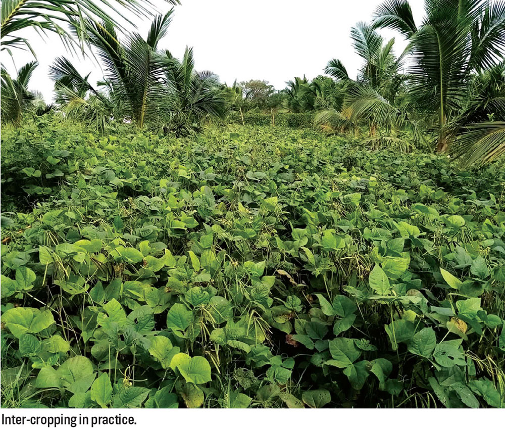 Diniti also looked into the aspect of inter-cropping within the first five years – the practice of growing other crops in the space between coconut trees to maximise land use and revenue generation. The additional income would allow them to reduce the burden of juggling expenses in cultivation management via an economically sustainable approach. They started growing crops of guava, passion fruit and turmeric, with separate areas allocated for mango and banana. The lower levels held kurakkan and green gram.