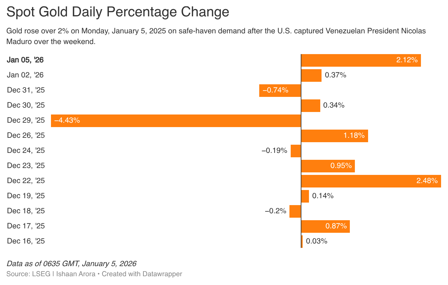 GOLD SURGES AS US CAPTURE OF VENEZUELA PRESIDENT SPURS SAFE-HAVEN DEMAND