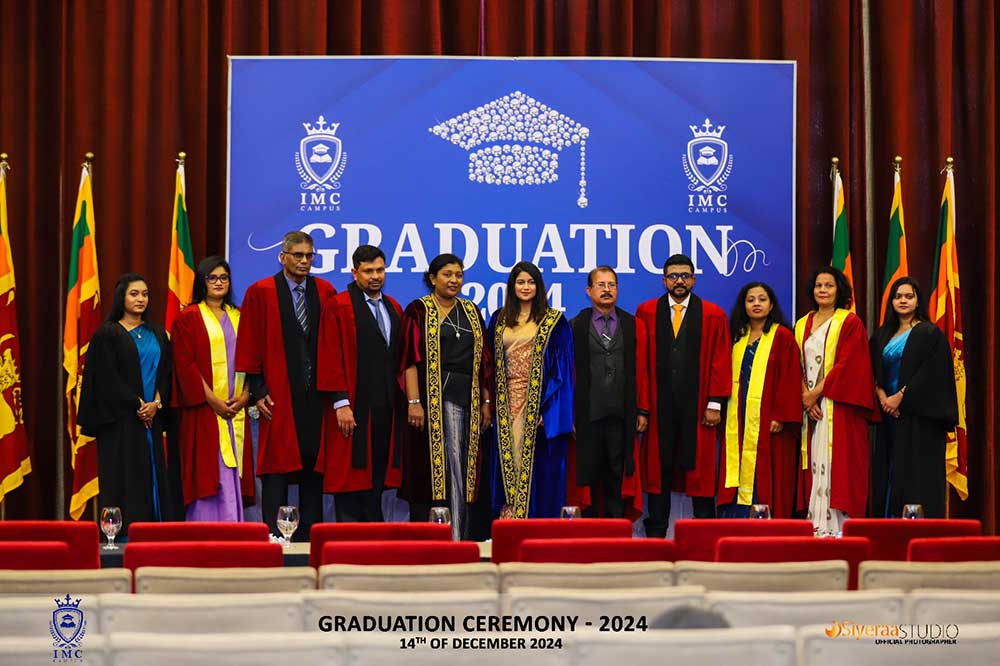 IMC Campus held its Annual GraduationCeremony on the 14th of December 2024, at the Bandaranaike Memorial International Conference Hall (BMICH) in affiliation with the IIC University of Technology. The ceremony was honored by the presence of the Chief Guest Prof. (Mrs) G.A.Sanjeewanie Ginigaddara (Former Vice Chancellor of Rajarata University, Dr. Kavya Jayakody (Founder/Director of IMC Campus), Dr. Engineer. Priyantha Morapitiya (Senior Lecturer), Dr. Pradeep Edward (Director/General Manager of Hemas Capital Hospital), Dr Dhanushka Wickramarathne (Head of Business Development, Internaional Relations, Climate & Geospatial EngineerinG of CESL) and Dr. Keerthi Nawarathne (Deputy Director General of Sri Lanka Institute of Advance Technological Education)