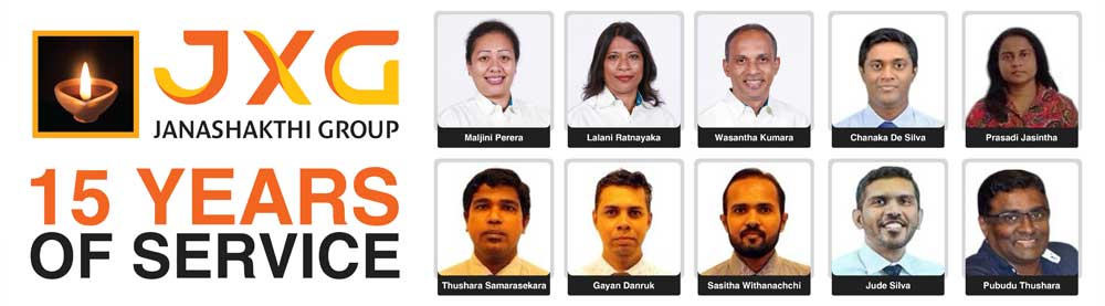 In recognition of their remarkable 25 years of service, employees were honoured with one sovereign gold coin, which featured the company’s logo, JXG, embedded in it as a symbol of their long-term commitment to Janashakthi Group’s (JXG) values and growth. The 25-year service awardees were Thejani Gunawardane, Kelum Weerasinghe, Nirojah Karunanayake, Krishantha Perera, Padmini Warshadheera, and Prasanna Ukwatte. The employees who marked 15 years of service at Janashakthi Group (JXG) were recognized with a special token of appreciation – half a sovereign gold coin, with the JXG logo. The recipients for this milestone included Maljini Perera, Lalani Ratnayaka, Wasantha Kumara, Chanaka De Silva, Prasadi Jasintha, Thushara Samarasekara, Gayan Danruk, Sasitha Withanachchi, Jude Silva, and Pubudu Thushara.