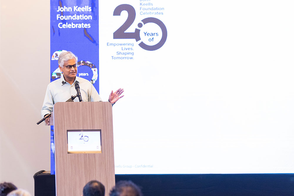 In her welcome address, Carmeline Jayasuriya, the Group’s Head of CSR said, “As the Foundation celebrates this milestone, we cannot do so without reference to all those who have been closely associated with this journey. Our success can be widely attributed to two strong support bases, the passionate volunteers across the Group and the wide array of partner organisations and individuals who have collaborated with us over the years.” She went on to note, “John Keells was visionary in initiating the set up of a dedicated CSR entity as early as 2003. Today, the Foundation hosts a portfolio of over 30 projects – mid-long term – across 4 focus areas, reflecting the diversity of businesses within the Group. The golden thread running through all these projects is our vision of `Empowering the Nation for Tomorrow’. Considering the many ebbs and flows Sri Lanka has seen through during this time, including the end of the 30-year conflict as well as crises such as the Tsunami, COVID pandemic and economic downturn, the Group was well placed to strategise, undertake and sustain critical social development endeavours through JKF. I am honoured to have been part of JKF’s journey, seeing it evolve over the years to espouse and meaningfully contribute to national needs and priorities specifically through a culture of empowerment.”
