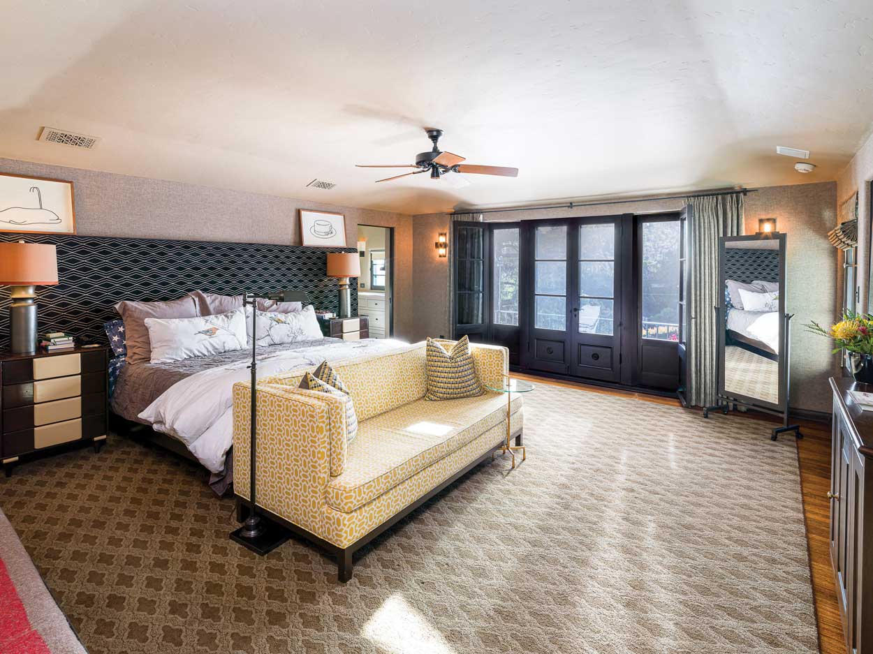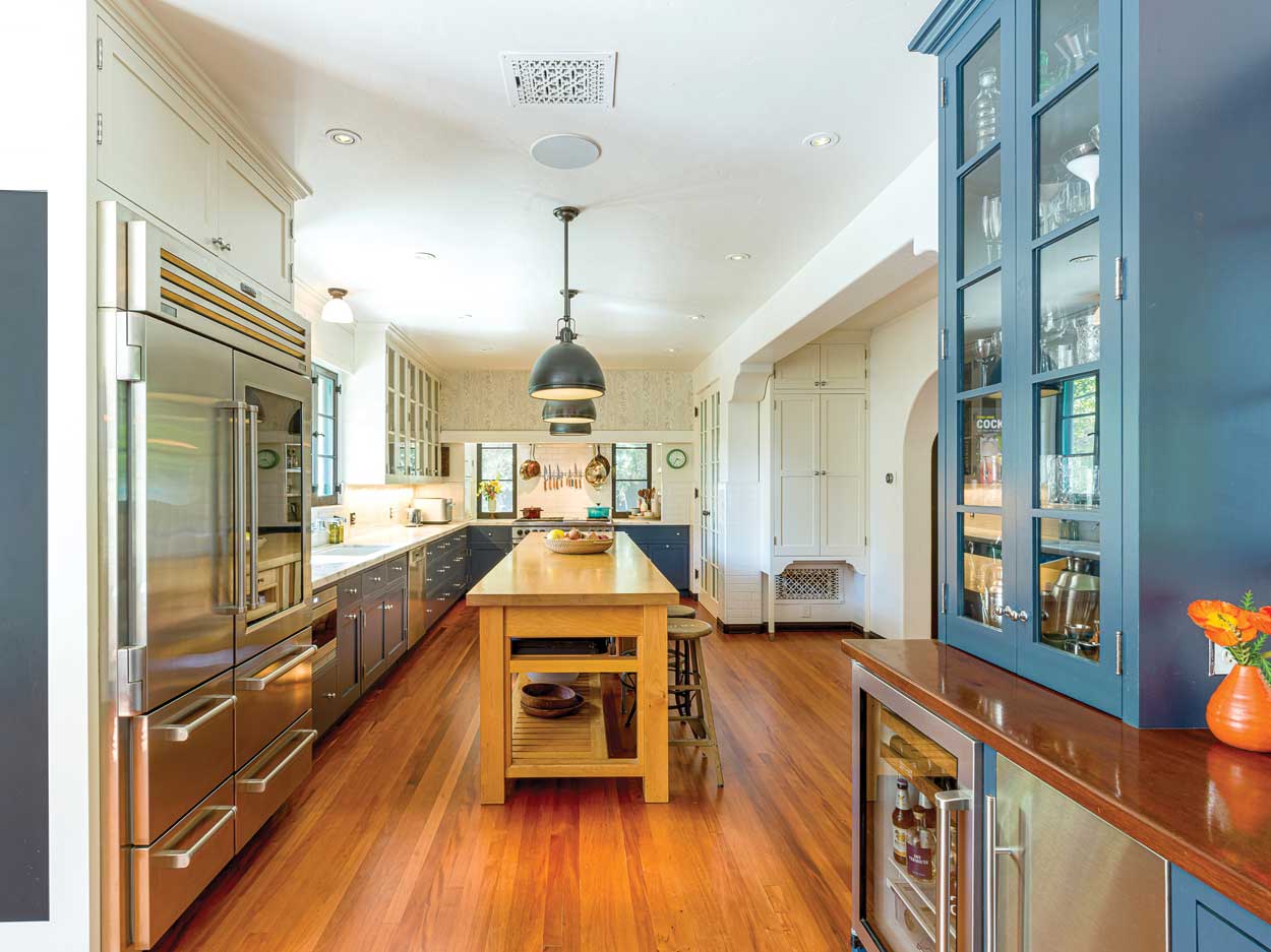 Built in 1928 and completely renovated, careful execution of work on the house retained and enhanced its period details. There are arched doorways, a tiled roof and floors, stained-glass windows, multiple fireplaces, elegant bathrooms, sweeping staircases, an intricately carved entry door and inlaid ceilings.