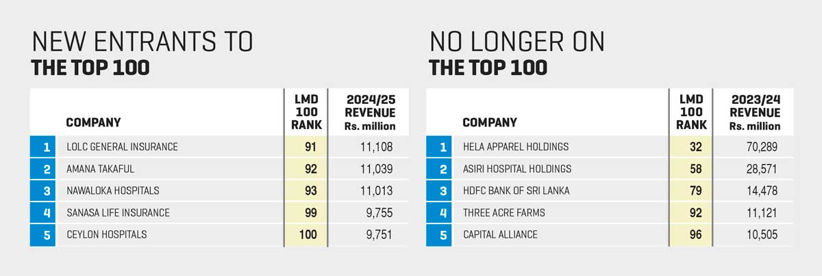 MOVERS AND SHAKERS Swisstek (Ceylon) makes a notable leap in the rankings, advancing from No. 97 to 75th place for the 2024/25 period, to claim the top position on the LMD 100’s most notable movers list.