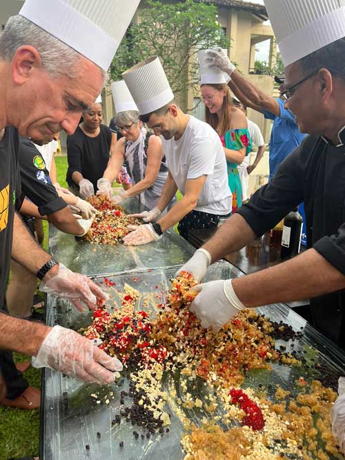 Readying itself for the upcoming festive season and embracing the Christmas spirit, the Mandara Resort Mirissa recently held its annual Christmas cake mixing ceremony in a vibrant fashion. Under the guidance of Mandara Hotels Chairman, Directors and Group General Manager the culinary staff of Mandara Resort put up a true culinary spectacle with the resorts annual Christmas cake mixing which saw the participation of not just the resort's staff and the experienced chefs but also the guests – both local and foreign alike – who put on chef hats and gloves, and eagerly engaged in the mixing process. The cake mixing took place by the resort's pool where dried and yet succulent fruits, crunchy nuts, sweet syrups, jams, and colouring were mixed together with enhancing spirits. The mix will now sit awhile for the flavours and aromas to brew and will be made into a delicious cake by the time of Christmas.