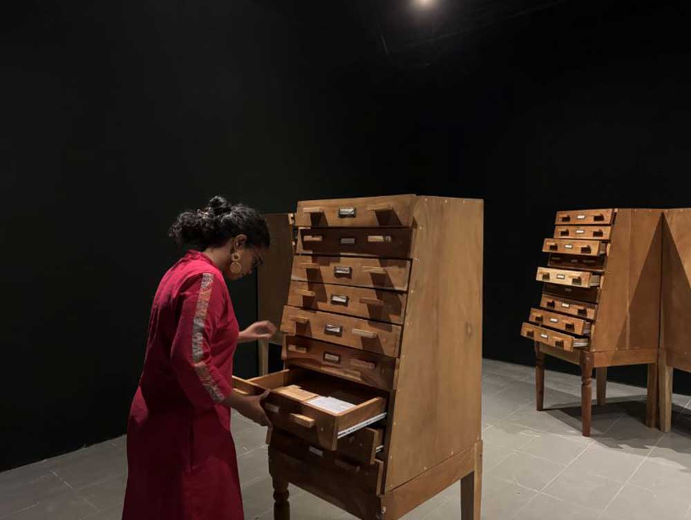 “Rotation 02 of ‘Total Landscaping’ will introduce a new selection of works spanning from photographs and paintings to sculptures and installations. “A paddy wild installation titled ‘Walk(er)’ by Danushka Marasinghe will remain in place from Rotation 1, continuing to introduce the exhibition,” said Sajeewa. He further noted that “This rotation also features three interactive artworks that promise to offer an engaging experience for visitors.” These interactive works include Pradeep Thalawatta’s ‘You came to see me, and now I’m here’ (2023) and T. Shanaathanan’s ‘Drawers of War Transactions’ (2019), which are both being exhibited for the first time in Sri Lanka.”