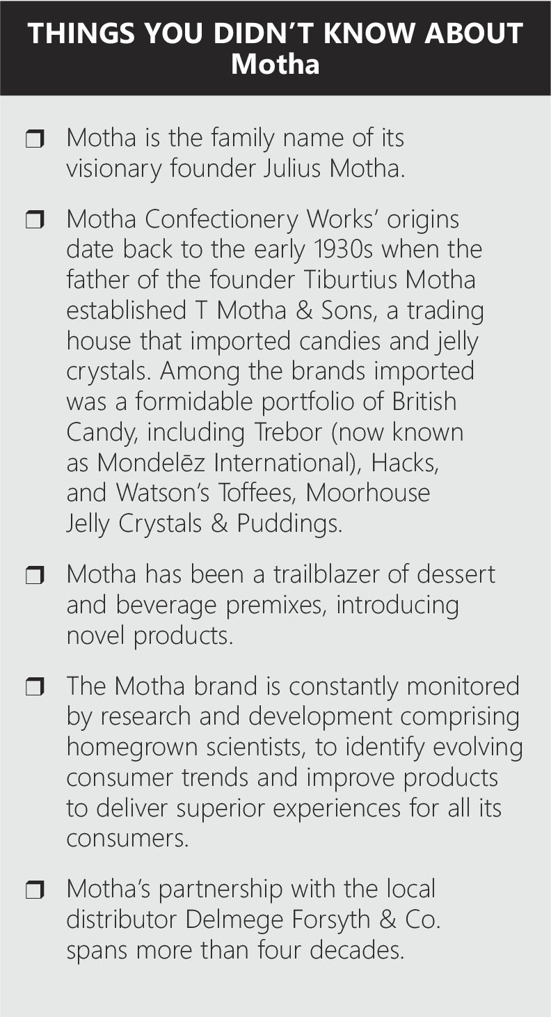 Motha’s greatest achievement is the unwavering loyalty and trust it enjoys. It is one of the few Sri Lankan brands that can proudly claim to have dominated the food (desserts) category continuously for more than six decades since its inception.