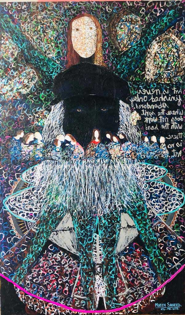 Winning the prestigious entrepreneur award 2019 is a testament to Mueen’s establishment of Art as a field that has great entrepreneurial capacity and capabilities. He is also helping people to find inner peace through art. Last year a group of drug abusers were sent to the Cultural secretariat where Mueen conducted a program “healing through art “this was a great success and the participants benefited from the program. He also regularly conductors healing through art for whoever needs his service and his work can be viewed on www.mueensaheed.com