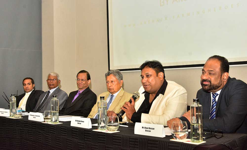 Picture shows the directors of Grains ‘n’ Green (Pvt) Ltd., which owns the Akshata brand (from left to right): Mr. Fredrick A. Abeywardene, Mr. K.A. Kularathne, Senior Professor K.K.D.S. Ranaweera, Mr. Mahendra J.C. Amarasuriya , Mr. Roshan Perera and Mr. Riyaz Hassan.