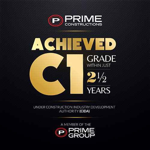 Prime Constructions (Pvt) Ltd (PCL), the construction arm of the real estate leader, the Prime Group, has achieved the coveted C1 grade under the Construction Industry Development Authority (CIDA) grading system in just two and a half years since its incorporation.