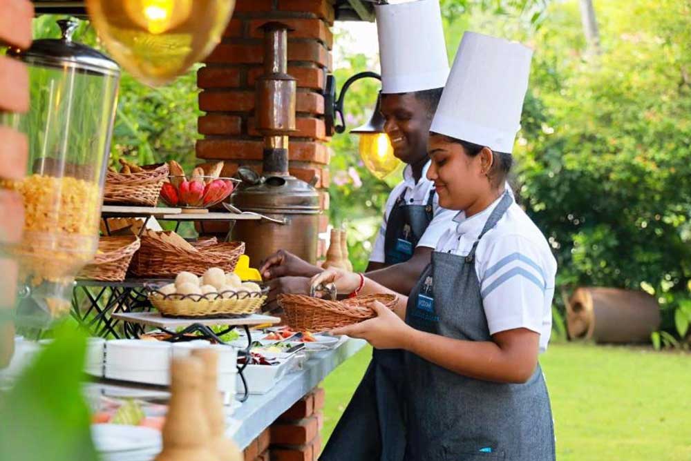 The first luxury property, Royal Classic opened in 2019 features 30 spacious rooms with pool bar, coffee lounge bar, three banquet halls, restaurant, gym, conference hall, outdoor pool with mountain view and garden area with high end amenities. R. Jeyapradhap also said that during the C-19 pandemic Royal Classic never closed down and kept the staff and the hotel maintaining them and when the pandemic was over the hotel was fully functional and was among the first t to re-open. Meanwhile Mahesh Sivasubramaniam the son of the Chairman also joined the hotel as Trainee and has now being promoted as the Marketing Manager of Royal Classic. He said that Royal Classic Kandy, due to its superior service has made a huge impact in the wedding conference segment and became a much sought after hotel for functions. “Due to this the management is now looking at investing a further Rs. 350 million to build another banquet hall and this will be added by next year.” Due to the hotels occupancy rates also increasing the management decided to add more hotels to their portfolio and soon took over the management of both Wisdom Boutique Resort in Kandy and also Wisdom Nature Resort in sigiriya. “We have taken these properties on long lease and have invested around Rs. 200 million for refurbishment, leases and outer overheads.” He added.