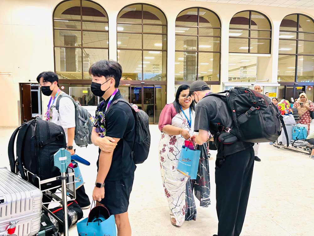 Sri Lanka Tourism Promotion Bureau, (SLTPB) in collaboration with the Sri Lankan Embassy in Seoul, South Korea, arranged a warm welcome for the JTBC Media Group, which is a popular Media group in South Korea, which caters to all Audiences and has a wide media coverage across the world. The group consisting of 8 members, recently arrived in Sri Lanka for a tour, in order to promote the main attractions, culture and cuisine of the country. They were warmly welcomed at the Bandaranaike International Airport on their arrival, by the TIC officials and officials of the Sri Lanka Tourism Promotion Bureau (SLTPB) and also received souvenirs, as a memoir of their visit.    They also selected Sri Lanka this time in order to have a few picturesque shots of the Island, for their new reality programme, ‘’ ‘’Extreme Tour’ ’Which includes a popular Korean celebrity taking the audience on a tour of a new destination.  It was launched recently and hopes to release their latest episode on Sri Lanka in September 2024. It was with this purpose they toured Sri Lanka and visited the best places to do the filming and get some stunning shots of the island.