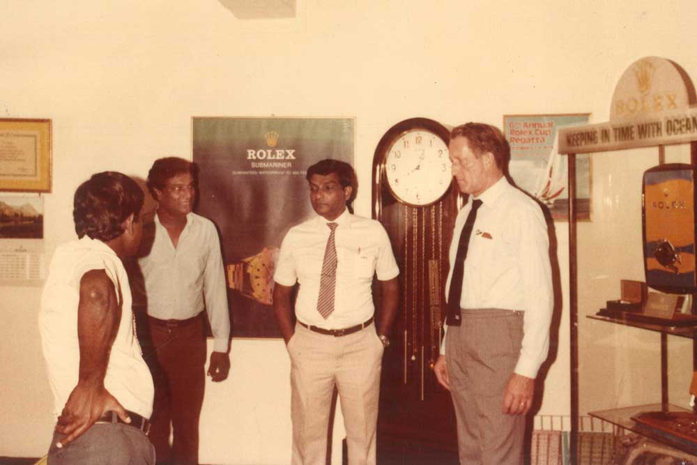 How did it all begin? Tharaka Jayatissa recounts that it was primarily an emotional rather than a business decision for his father who always had a great passion for quality watches and was the Chief Technician at B P De Silva’s. “Rolex were having problems with their agents at that time and my father having specialised in Omega watches wrote to Rolex in Geneva, saying that with his considerable experience as the Chief Technician for Omega, he would like to take over the Rolex agency”. Within a period of approximately one year, Mr Boilet from Rolex Geneva, together with Mr Ramsay who headed the Rolex operation in Singapore came to Sri Lanka and commenced discussions with Mr Jayatissa Snr. “They were completely satisfied that their prestigious brand would be in good hands and my father was given the go ahead”. The first showroom was opened on 4th November 1973 and was located on the ground floor of the Hemas building in York Street Colombo 1. It was named after Mr Jayatissa