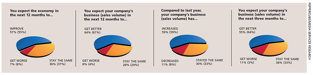Fifty-nine percent of poll participants – unchanged from last month – report an ‘increase’ in sales volumes.