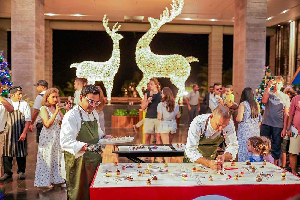 An exquisite showcase of culinary artistry by the hotel’s master chefs took center stage, with the “Art of Season on Table” presentation capturing the imagination of attendees. Complementing the evening’s sensory delights were the thematic food and beverage stalls offering festive treats, from Sri Lankan sweets to Indian chaats, paired with mulled wine.