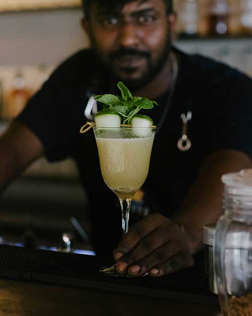 The team, composed primarily of passionate individuals from the South of the island, through adversity and rigorous training, have mastered culinary techniques by adapting methods that enhance the natural qualities of spices, herbs, and indigenous ingredients such as wild bee honey, the team brings out the richness of Sri Lanka’s culinary heritage in every dish and drink. The bars’ standout creations include teas infused with local flavors, all crafted in-house with
